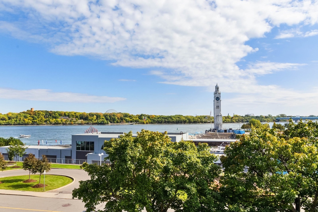 -View of Old Montreal's clock tower and the St. Lawrence River