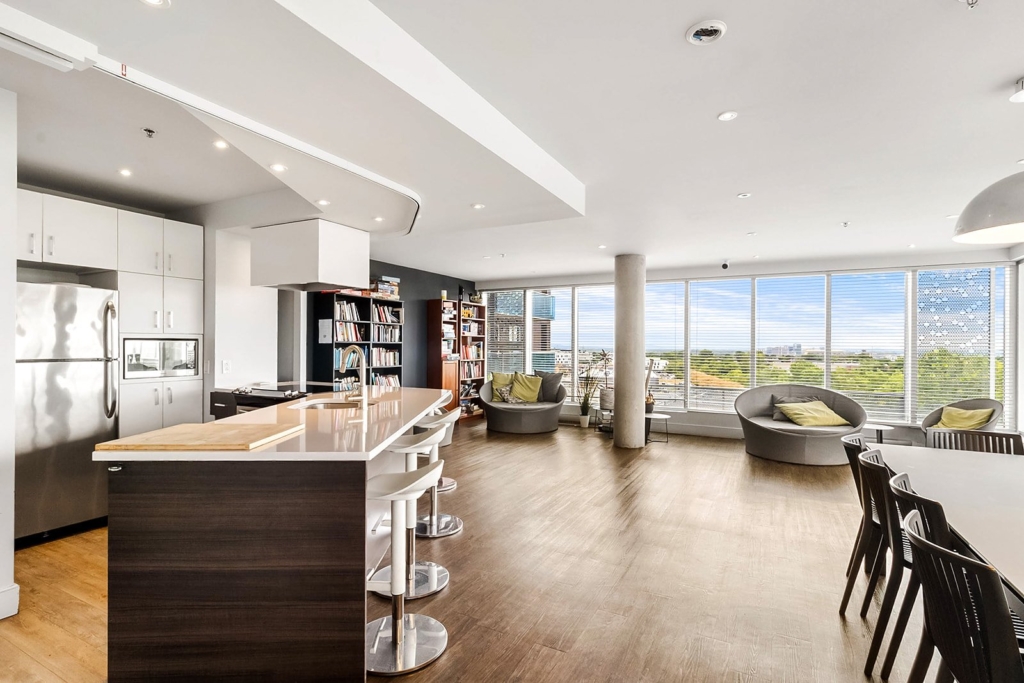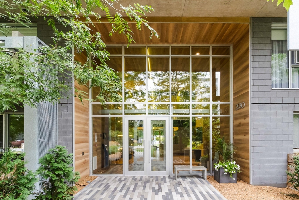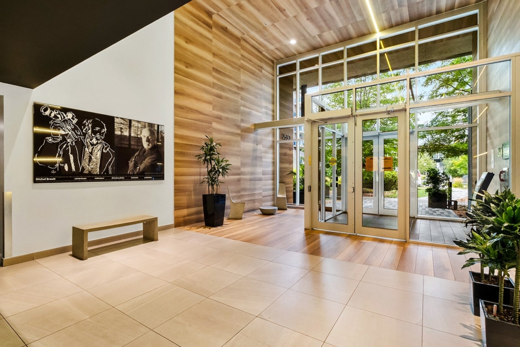 -Corner condo offering modern amenities and on-site services.