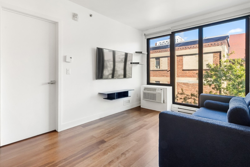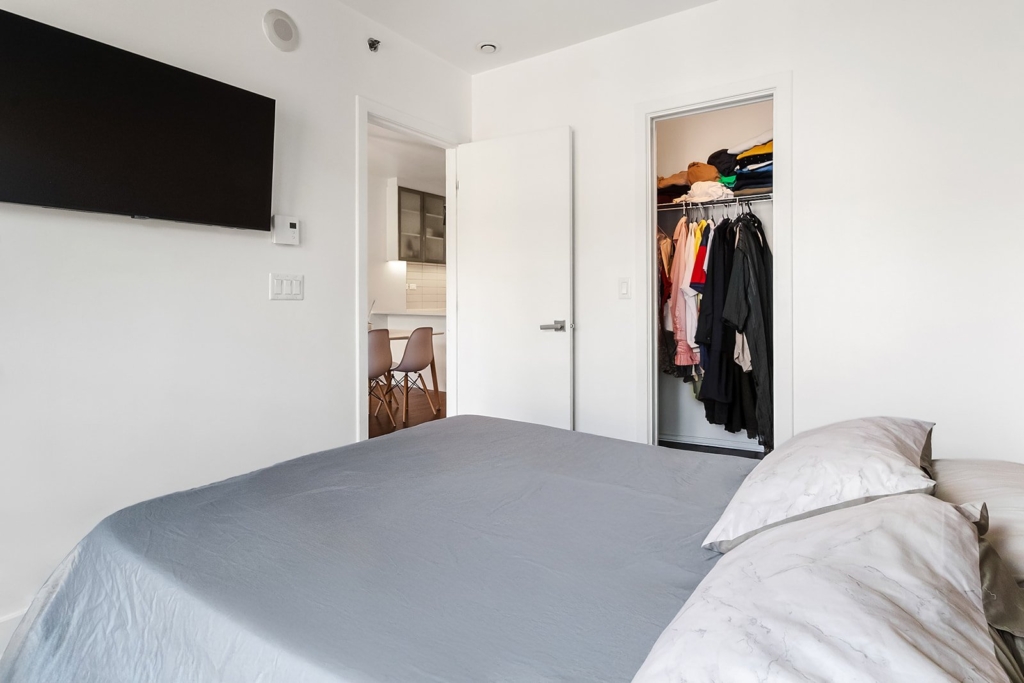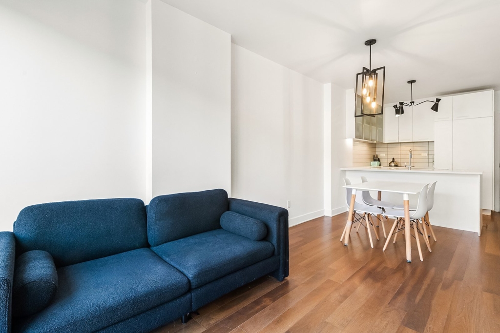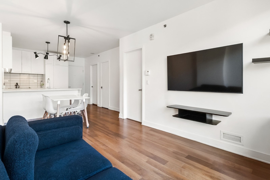 Located on the 5th floor, this charming one-bedroom unit with closet and full bathroom (tub/shower) stands out for its brightness and functional layout. The kitchen opens onto the dining room and living room, creating a welcoming space with floating floors and ceramic tiles. Large windows flood the rooms with natural light and provide access to a private balcony. Well-maintained and available immediately, this property is an ideal choice for a professional, a couple, or an investor.